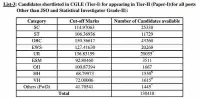 SSC CGL Tier 1 Result 2025 cutoff