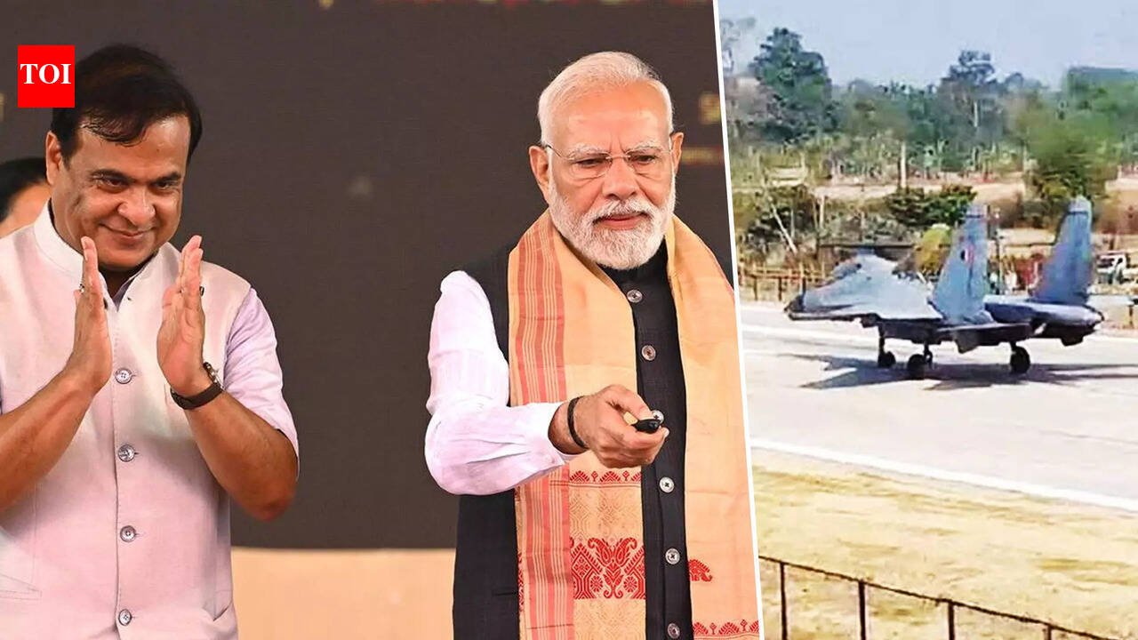 NEW DELHI: Prime Minister Narendra Modi on Saturday landed at the Emergency Landing Facility on the Moran Bypass in Dibrugarh as part of his day-long visit to Assam.He was received at the Chabua airfield by Assam governor Lakshman Prasad Acharya, chief minister Himanta Biswa Sarma, Union minister Sarbananda Sonowal and senior state government officials.